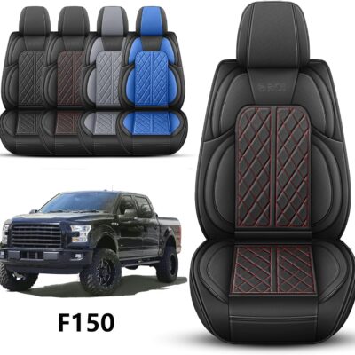 Car Seat Cover Custom Fit for Ford F150 2009-2026 Faux Leather Seat Cover Set Compatible with Regular Cab Super Cab Super Crew Pickup Truck Cushions (Black Redline, Front Seat)