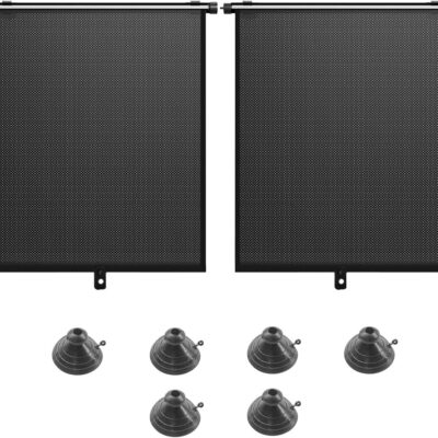 2PCS Car Side Window Sun Shade for Baby/Kids- 18″×14″ Retractable Roller Car Window Shade with Suction Cups – Blocks Heat and UV Rays Glare Protection- Baby Travel Accessories for Cars (Black)