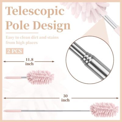 2 PCS Car Interior Duster with Extension Pole, Microfiber Car Duster with Bendable Head, Car Accessories Dusters Exterior&Interior Scratch Free, for Cleaning of Vehicle Details, Offices, Windows(Pink)