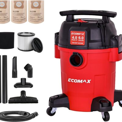 ECOMAX Ultra Quiet Shop Vacuum Wet and Dry 6 Gallon, Shop Vac 4 HP, 80% Quieter Operation, 3X Longer Motor Lifespan, Powerful & Portable for Home, Garage, Jobsite, Workshop