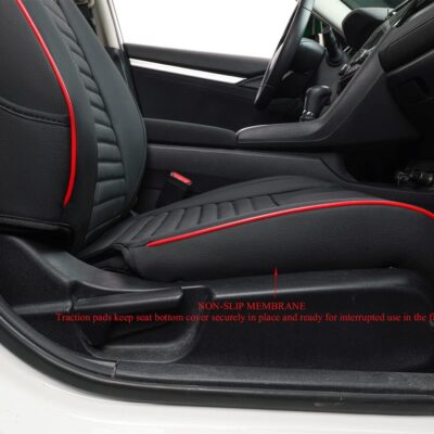 EKR Civic Seat Covers Custom Fit for Honda Civic Hatchback 2018 2019 2020 2021 EX,EX-L,Sport,Sport Touring,Waterproof Leather Car Seat Cover Full Set,Faux Leather(Black with Red Trim)