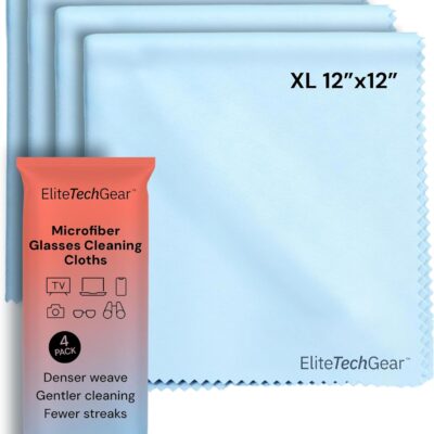 Elite Screens Microfiber Cleaning Cloth – 12″ x 12″, 4-Pack, Blue – Oversized Screen Cleaning Cloth – Streak-Free Glasses Wipes – Scratch-Resistant Lens Wipes for Eyeglasses