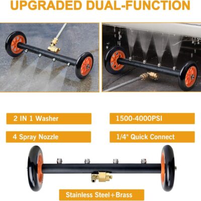 EVEAGE 2-in-1 Undercarriage Pressure Washer Attachment, 16″ Pressure Washer Water Broom, 3 Extension Wands Wash Mitt, Reversible Undercarriage Cleaner, 4000 PSI