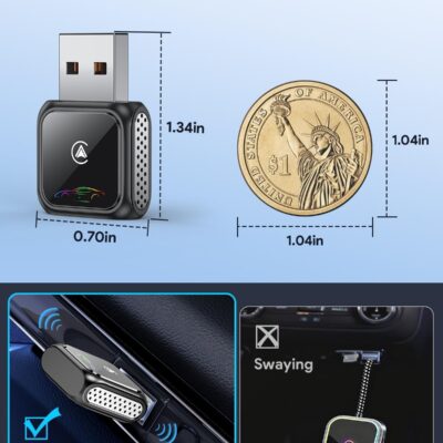 FAHREN Super Mini Wireless CarPlay Adapter (Latest Upgraded)-Bluetooth Apple Car Play Dongle, Zero Latency, Stable Connection, Compatible with iPhone 6+ & Android Auto 10+, Cars from 2017, USB/Type-C