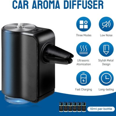 Featwell Car Air Freshener, Three Adjustable Modes Intelligent Car Aroma Diffuser, Rechargeable Car Aroma Diffuser, Black