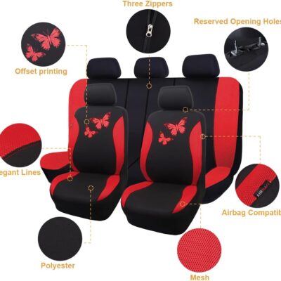 Flying Banner Butterfly car seat Covers ful Set Fashion Universal Lady Woman Female Rear Bench Split Colorized (Full Set, Red)