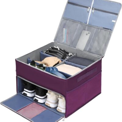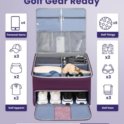 Golf Trunk Organizer for Golf Shoes Clothes Gloves Hats Large Collapsible Golf Storage Box with 4 Dividers Water-Resistant Golf Shoe Bag for 2 Pair of Shoes Golfing Accessories for Men Women Golfers