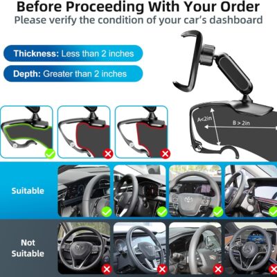 Universal 360 Dashboard Cell Phone Holder, Upgrade Clip Car Phone Holder Mount for Dashboard 360 Degree Rotation Dash Board Phone Mount Fit for iPhone,Samsung,Google,Nokia, 4 to 7″ Smartphones