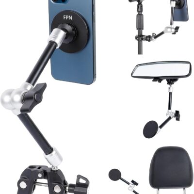 All-Metal Magnetic Phone Holder with Super Clamp&10″ Long Arm for Magsafe, Adjustable Rear View Mirror Phone Holder Mount for Car/Truck/Handlebar, Compatible with iPhone 16 15 14 13 12 Series
