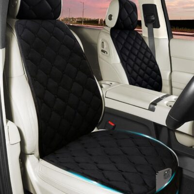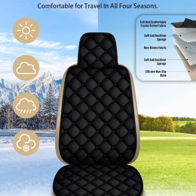 2 Pack Car Seat Covers with Storage Pocket & Pillow Cushion Front Seat Protector Front Seat Covers Breathable Soft Felt Cotton Non-Slip Auto Seat Cover Universal Fit for Most Car Truck SUV Van Black