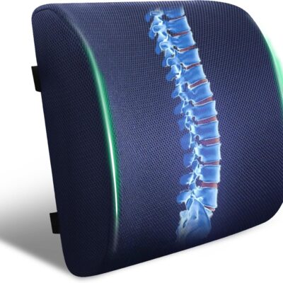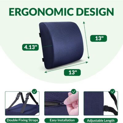 Back Support Pillow for Office Chair and Car Seat,Lumbar Support for Office,Charcoal Memory Foam Back Cushion-Breathable Mesh Cover,Double Adjustable Straps,Dark Blue
