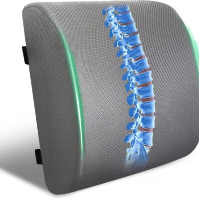 Lumbar Support Pillow for Office Chair and Car,Back Support for Office Chair,Charcoal Memory Foam Back Cushion with Breathable Mesh Cover,Double Adjustable Straps,Grey