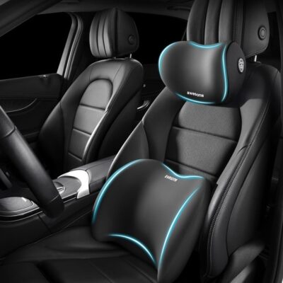Car Headrest & Lumbar Support Cushion Kit, Ergonomic Car Seat Neck Pillow and Backseat Cushion for Driving Fatigue Relief, Driving Seat Memory Foam Neck Back Rest Pillows (Black)