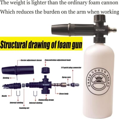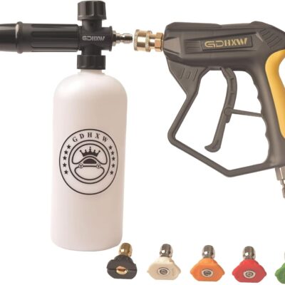 GDHXW Short Pressure Washer Gun with Quick Connection 5000PSI, Light Duty Foam Cannon Thick Foam Blaster, 5 Nozzle Tips,For Pressure Washer