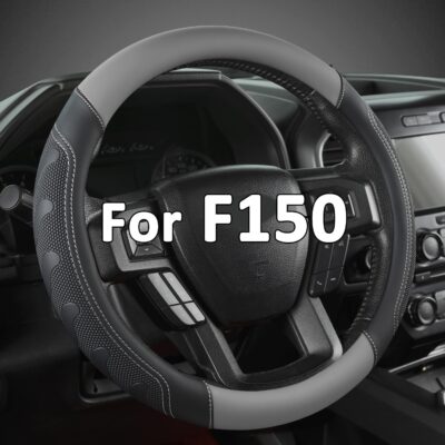 GIANT PANDA Car Steering Wheel Cover for Ford – F150 F250 F350 Expedition, (15.5-16 inches – Black+Gray)