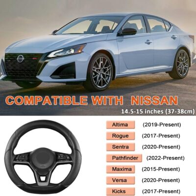 GIANT PANDA D Shape Steering Wheel Cover for Nissan Rogue Kicks – Auto Car Steering Wheel Cover Customized for Nissan Altima Sentra(Black+Black Line-D-Shaped)