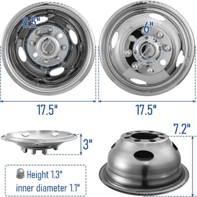 17″ Wheel Simulators, 17″ 8 Lug Stainless Steel Hubcaps with Wheel Lug Bolts Kit, Polished Finish, 2 Front Wheels/2 Rear Wheels, Suitable for 2005-2021 Ford F350 Truck.