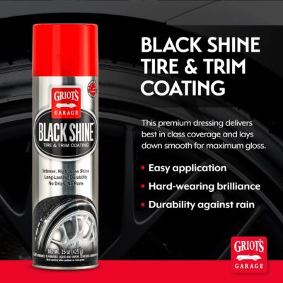 Griot’s Garage Black Shine Tire and Trim Coating, Water-Resistant Dressing, Provides a High-Gloss Finish, Rain, and UV Protection, 10938, 15oz