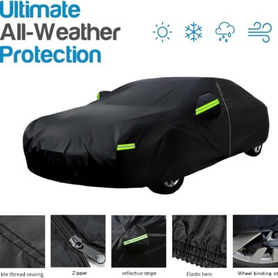 Sedan Car Cover, Car Cover Waterproof All Weather for Automobiles, Outdoor Full Car Covers Windproof Universal Fit for Sedan 178-185 inch