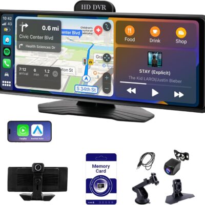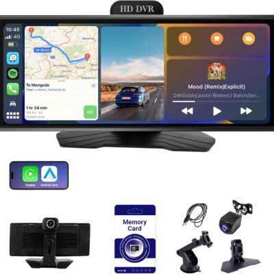 10.26 Inch Wireless Apple CarPlay & Android Auto Car Display with 1080P Dash Cam & Backup Camera All-in-One Smart Car Stereo Free 64GB SD Card