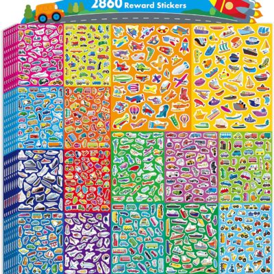 2860 Vehicle Stickers, 64 Sheets Vibrant Transportation Stickers Various Cars Trucks Airplanes Ships Constructions Motivational Decals for Kids School Classroom Home Reward Gifts Party Supplies