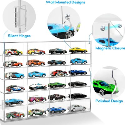 Acrylic Display Case for Hot Wheels & Car Tuned Diecast – Wall Mount & Desktop Display Case for 1/64 Scale Cars, Matchbox Garage, No Assembly Required, Magnetic Door Dustproof Showcase