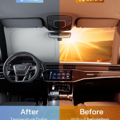helloleiboo Graphene Car Windshield Sun Shade – 59″ x 33″ Foldable Car Sun Shade, Advanced Heat Absorption & UV Protection, Universal Fit for Cars, SUVs & Trucks