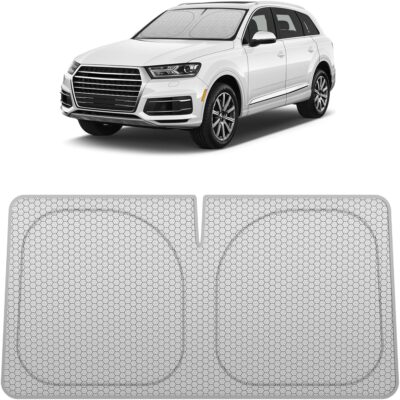 helloleiboo Graphene Car Windshield Sun Shade Car Sun Shade for Windshield with Heat Absorption Coating Foldable Design with UV Protection to Keep Your Car Interior Cooler Silver (X-Large-61 × 34 in)