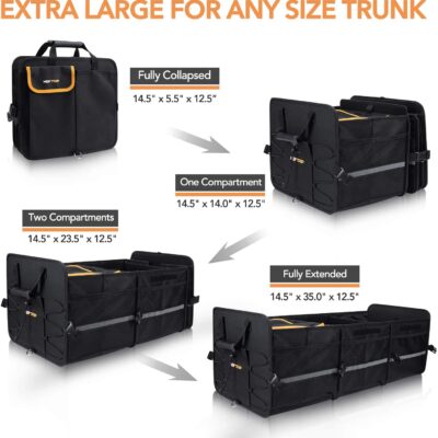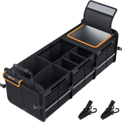 HEYTRIP Large Trunk Organizer With Built-in Leakproof Cooler Bag, 2 Tie-Down Straps, 4 Removable Dividers, Foldable Cover, Built with 2mm PE Board