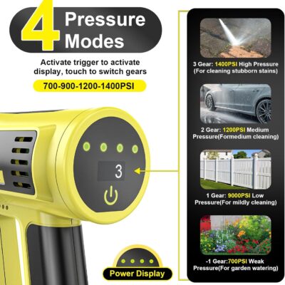 Cordless Pressure Washer, 2200W Brushless Motor, 4 Speed Modes, Max Pressure 1400PSI, 2 x 4.0 Ah Batteries, 6-in-1 Swivel Nozzle, Cleaning Brush, 16.4FT Hose, Cleaning and Garden Irrigation