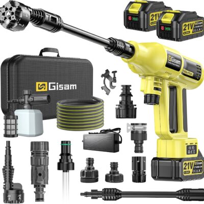 Cordless Pressure Washer 1500PSI 2.6GPM 400W Brushless Motor,Portable Electric Power Washer, 2 Batteries, Fast Charger, 6-in-1 Nozzle, Extension Rod, 16.4FT Hose & Storage Case for Car Home Cleaning