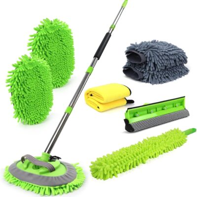 62” Car Wash Brush with Long Handle Car Wash Mop Mitt Chenille Car Cleaning Kits Windshield Window Squeegee Car Duster Microfiber Towel Gloves for Cars RV SUV Truck 11PCS
