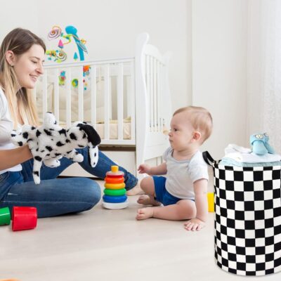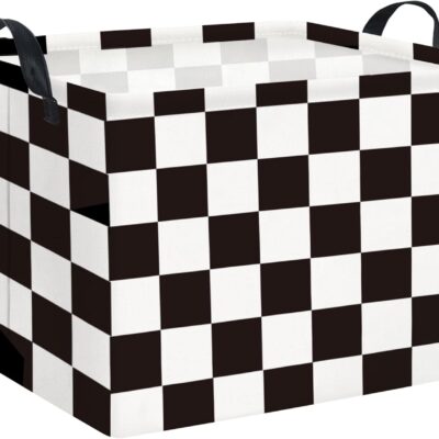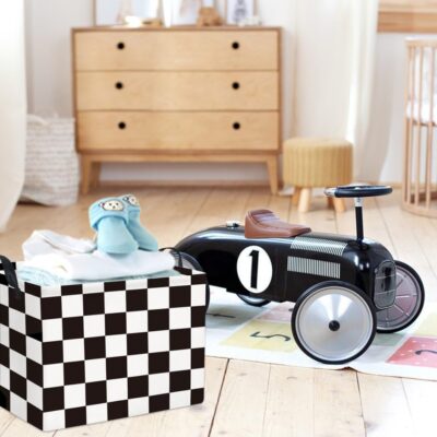HIYAGON Rectangular Car Basket for Boys Checkered Basket Kids Baby Storage Bin Toy Organizer Box Car Room Decor(Racing Flag)