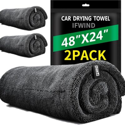 2 Pack Car Drying Towels (48”x24”),Extra Large Double-Twist Pile Drying Towels Car Detailing for Car Care Wash,Car Super Cleaning Supplies Accessories kit,Ultra Absorbency