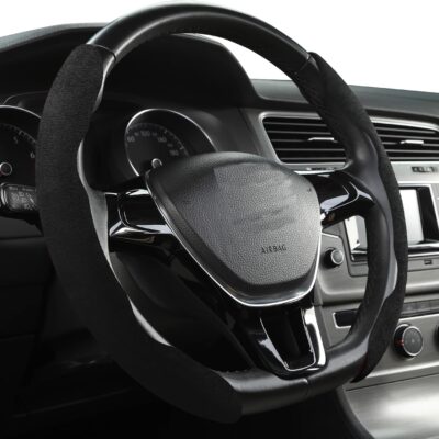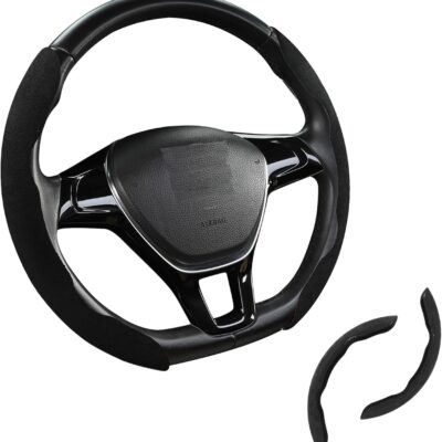 Premium Suede Car Steering Wheel Cover, Non-Slip Segmented, Suitable for Car, SUV, Truck, O/D Shape, 14.5-16inches Steering Wheel Protector,Universal Auto Accessories (Black, 2pcs)