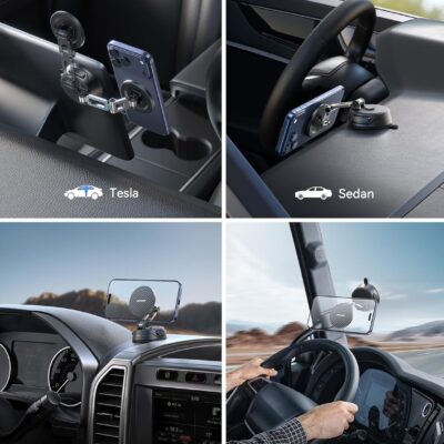 JOYROOM Car Mount for iPhone, [Tri-Fold] MagSafe iPhone Car Mount, [Suction Pro+Gel Base] 360° Rotation iPhone Car Holder, Strong Magnet for iPhone 17 Pro Max and Other Series[Not for Charging]