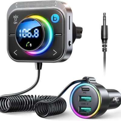 JOYROOM 96W FM Transmitter Bluetooth 6.0 Car Adapter Aux with 3 Charging Ports【PD 60W & 2 * 18W】【Air Vent Installation for Safe】 Deep HiFi Bass Player Wireless Radio Fun Car Accessories Gift Set