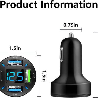4 Ports USB Car Charger USB Adapter with Voltmeter,Type C Port PD 3.1/QC 3.0 Super Fast Charging Car Cigarette Lighter Plug for iPhone 14 13 12,S22 S21 S20,iPad Pro& More Mobil Phone (Black)