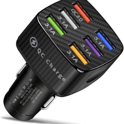 Fast Charging 6 Ports Car Phone Charger Adapter,QC3.0/3.1A Type Smart Shunt Cigarette Lighter USB Charger Compatible with iPhone 14 13 12,S22 S21 S20,iPad Pro& All Mobil Phone (Black)