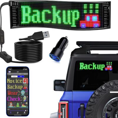 KJOY USB 5V LED Sign, Bluetooth, App Control, Flexible, Programmable Custom Text Pattern Animation Scrolling Display for Car, Store, Party, Bar, Hotel, Concert, 14.6”x3.6”