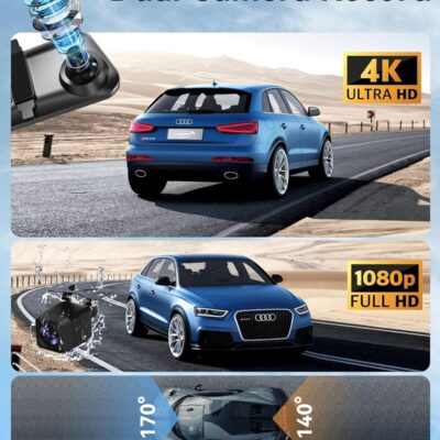 4K Rear View Mirror Camera with Carplay&Android Auto,12″ Mirror Dash Cam Front and Rear with Voice Control for Cars&Trucks,Smart Touch Screen,64GB Card Included/Loop Record/Reverse Assist