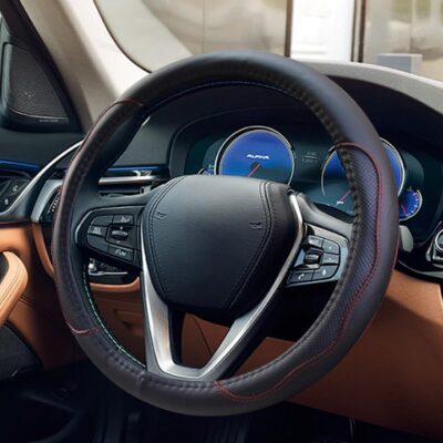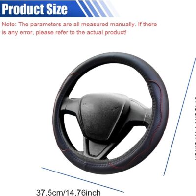 Car Steering Wheel Cover, 15 Inch Leather Anti-Slip Breathable Automotive Steering Wheel Protector, Universal Heat Resistant Vehicle Interior Accessories Cars, SUVs, Trucks(Black&Red)