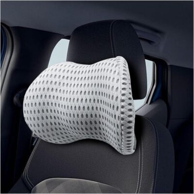 Ergonomic Memory Foam Car Neck Pillow with Adjustable Strap & Machine-Washable Cover – Long-Lasting Support for Long Drives & Office Use(Gray)