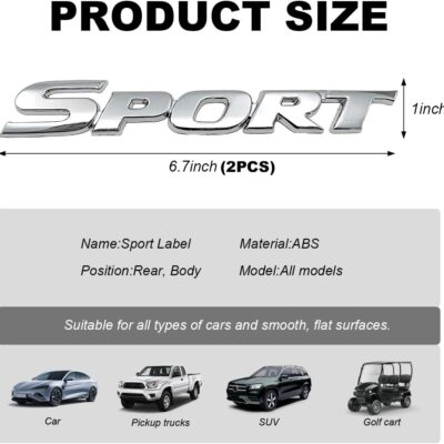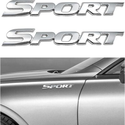 2 PCS 3D Metal Car Sport Sticker, Chrome-Plated Personalise Sport Emblem Car Tailgate Decal Sticker, Automotive Side Fender Rear Adhesive Emblem Badge Decals for SUVs Sedans RVs (Silver)