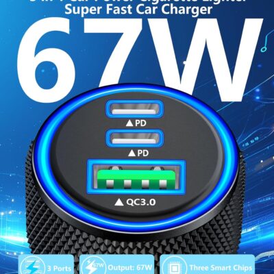 • USB C Car Charger, 3-Port 67W Dual USB-C & USB-A Car Power Adapter PD/QC Fast Charging Cigarette Lighter for iPhone 17/16/15/14/13/12/11 Pro Max, iPad, Samsung Galaxy S25 S24/S23/S22, Pixel, Android USB C Car Charger, 3-Port 67W Dual USB-C & USB-A Car Power Adapter PD/QC Fast Charging Cigarette Lighter for iPhone 17/16/15/14/13/12/11 Pro Max, iPad, Samsung Galaxy S25 S24/S23/S22, Pixel, Android $12.99 Original price was: $12.99.$9.98Current price is: $9.98.