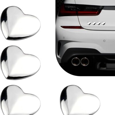 4PCS Heart Metal Car Emblem Stickers, Metal Chrome Waterproof Fade-resistant Vehicle Decals, Creative Fashionable Rear Love Badge Decoration, for Doors, Bumper, Rear License Plate (Silver)