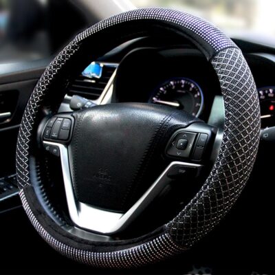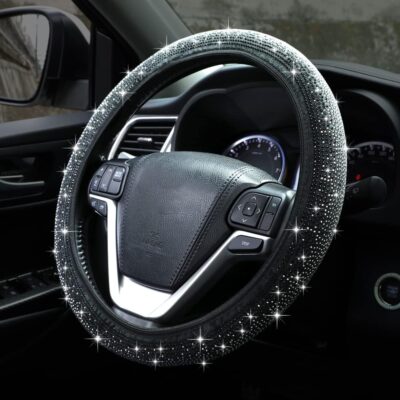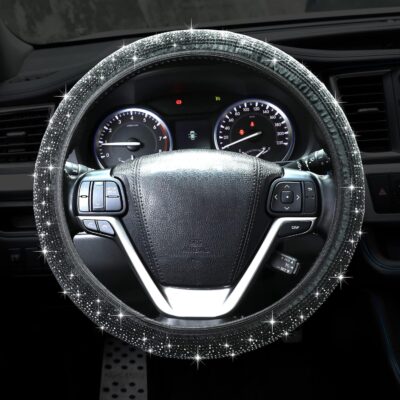 Bling Steering Wheel Cover, Crystal Rhinestone Diamond Steering Cover Universal Fit 15 inch Car Steering Wheel Protector for Women & Girl (Black)