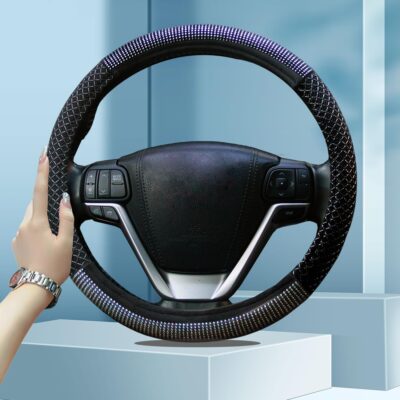 Bling Steering Wheel Cover, Bling Crystal Rhinestone Steering Wheel Cover Universal, 15 Inch Sparkling Anti-Slip Wheel Protector for Women or Girls, Easy Installation and Cleaning(Half Black)