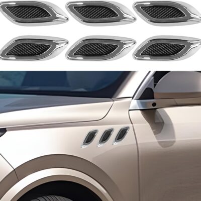 6PCS Car Exterior Hood Side Door Air Vent Cover, Glossy Auto Fenders Trim Intake Grille Decorative Sticker, ABS Hood Spoiler Bumper Side Vent Decal Decoration for Most Cars (Silver)
