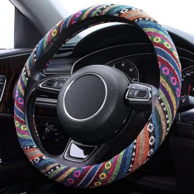 Boho Steering Wheel Cover Elastic Microfiber for Women, Universal Fit 15 inch Car SUV, Hippie Style Protector Cover, Anti-Slip, Breathable, Absorbing Sweat – 01